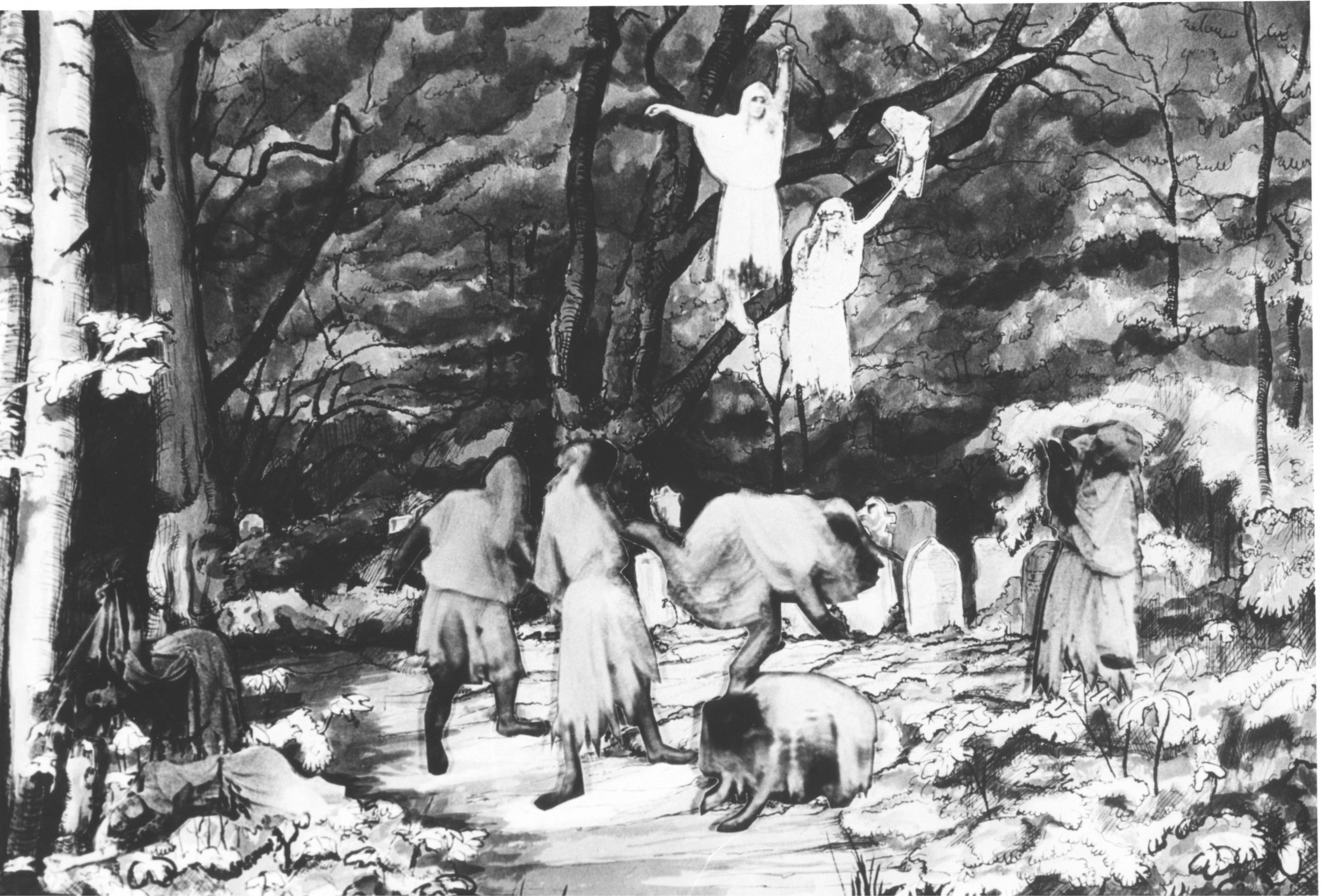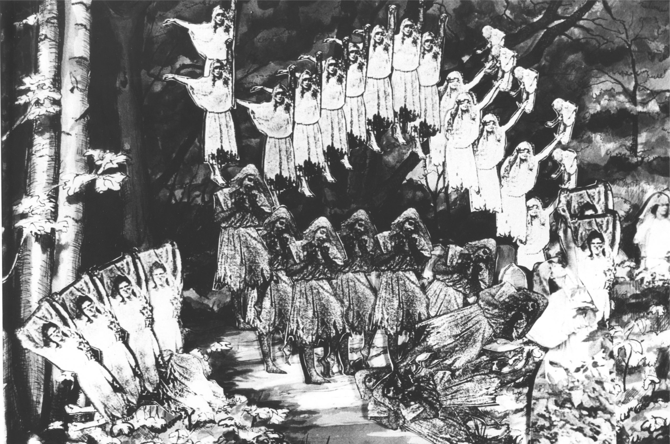 “In looking at Giselle, we wanted to question the stereotypes of the original story, while still retaining its power and excitement. Above all we wanted to remove Giselle from her eternal victim role, give her a voice and allow her to triumph. In our story, Giselle very soon discovers Albrecht’s duplicity, and is not taken in by him. It is not Giselle who goes mad, but Albrecht and then his fiancée Bathilde, and finally everyone else. Giselle does not die, but chooses to join Myrtha, the Queen of the Wilis, as the Sorceress’s apprentice. In the dance of death, it is Giselle who survives, all the rest who fade away. The other characters, too, have changes in emphasis, Giselle’s mother, Berthe, is seen as a healer, a woman of strength, rather than as the irritation fuss-pot of the tradition. Myrtha is seen as a powerful witch, very much in the tradition of Circe. For Albrecht, the role of the romantic hero becomes a trap he cannot escape, and Hilarion suffers a less severe fate than death – he is turned into a rabbit…